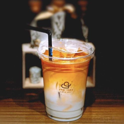 本場タイの伝統的な 「チャー・ノム・イェン(タイ・ミルクティー)」 もご提供。タイから直輸入した高品質の茶葉を使用し、香りと味を引き出すために特別な方法で煮出しています。その優しい香りと、オレンジのような色をしているのが特徴のミルクティー。とても甘く濃厚な味わいで、疲れを癒すのにもぴったり♪